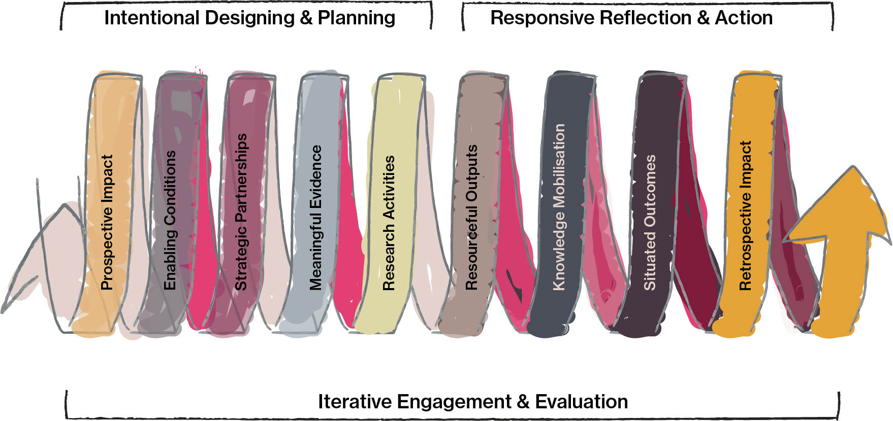 Our conceptual map resists the linear logic of a phased approach. Instead, it reframes research impact by showing how research and engagement activities are interconnected. Nothing is simple, and that’s the point.